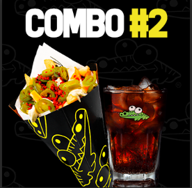 1 Cono fries a elegir guacamole, chicken cruji, bacon, pizza, 3 quesos, nacho y un refresco a elegir.
