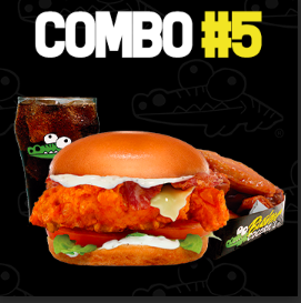 Deliciosa hamburguesa a base de pechuga de pollo 150 g, acompañada de aderezo spicy dip monsta, tocino, dedos de queso, cheesse dip en espiral, queso manchego y jalapeño.