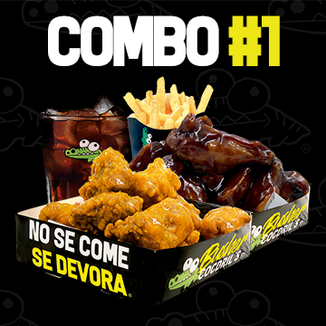 Pechuga crispy, salsa cocowing´s, guacamole, salsa de queso y papas fritas.