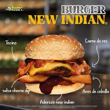 Aderezo nex indian, tocino, cheese dip, carne de res y aros de cebolla