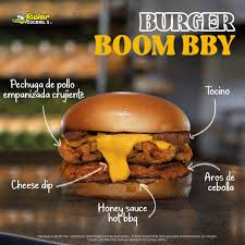 Pechuga crispy, Salsa de queso, aros de cebolla, tocino y aderezo BBQ.