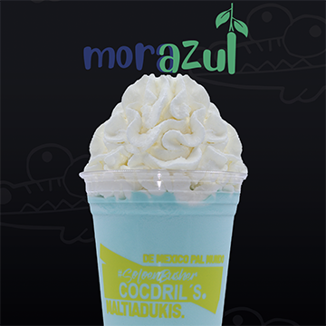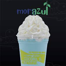 Mezcla de helado con leche con sabor mora azul acompañado concrema batida
