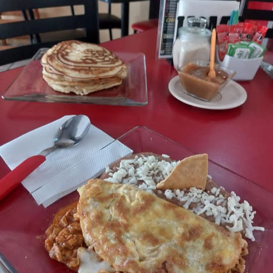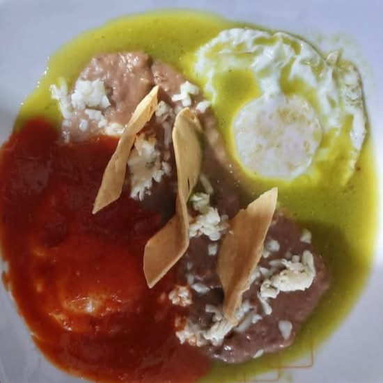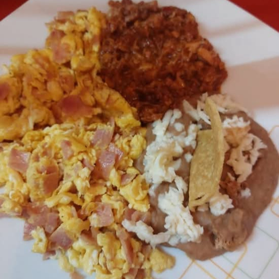 1 Huevo estrellado o revuelto, frijol, arrachera, queso.