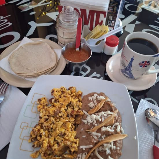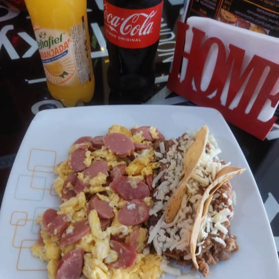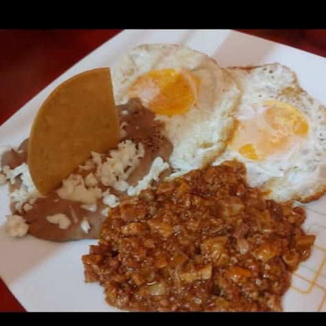 1 Huevo estrellado o revuelto, frijol, guiso extra a elegir.
