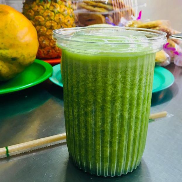Espinaca, perejil, apio, nopal, piña, pepino y jugo de naranja, cantidad 600ml.