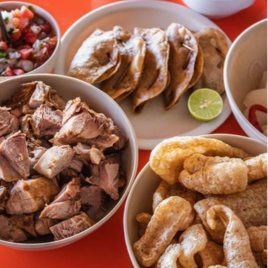 1/2 kg Carnitas al gusto y 1/2 de cuero frito.