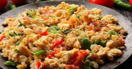 Huevos revueltos al estilo tradicional mexicano con tomate rojo, cebolla blanca y chile serrano o jalapeño fresco, sazonados con sal y pimienta, llenos de color y sabor.