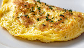 Suave omelet de huevo relleno de jamón y queso fundido, sazonado con sal y pimienta, con un delicado toque de cebolla o pimiento para realzar su sabor.