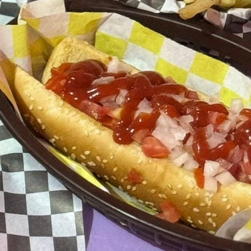 Salchicha 40g, tomate, cebolla, jalapeños, catsup