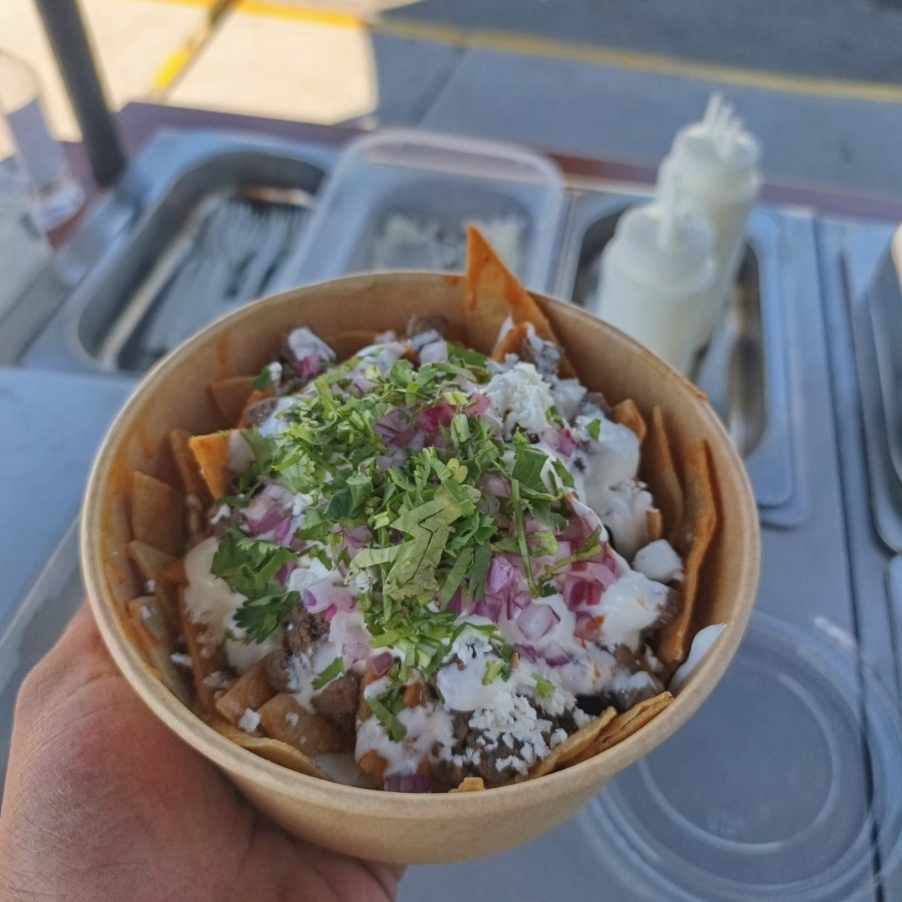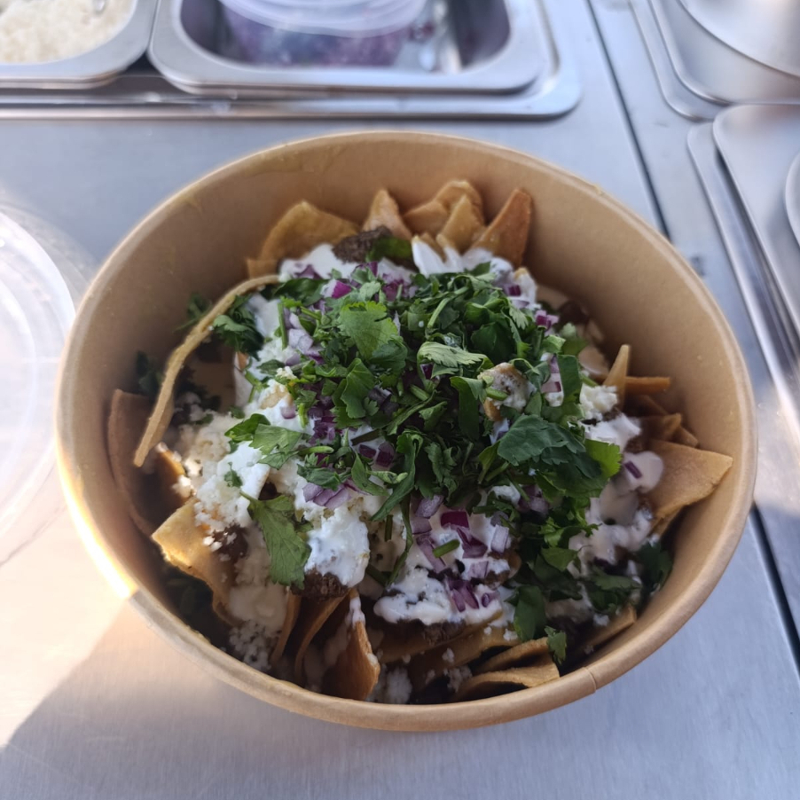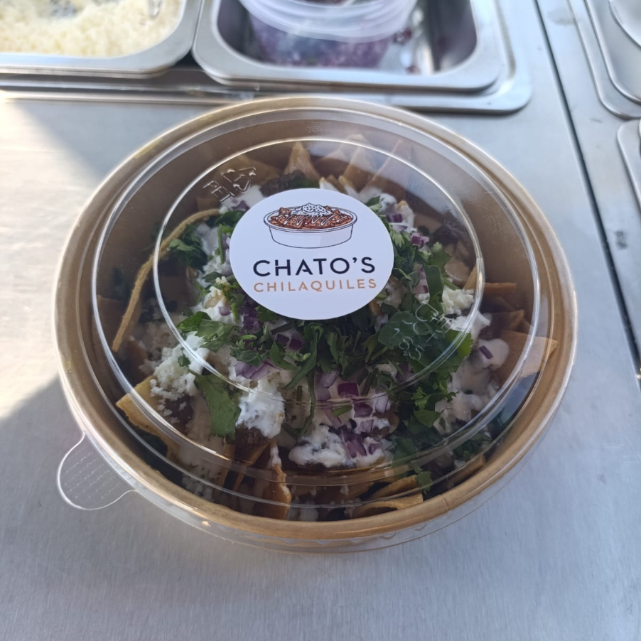 Deliciosos chilaquiles Picositos Preparados con nuestra tradicional Salsa Verde acompañados con Arrachera .