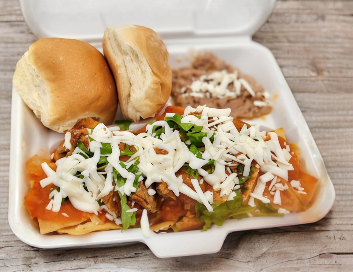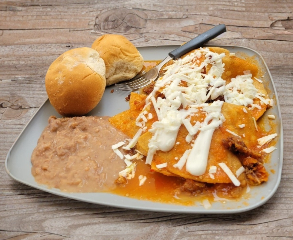 Acompañados con crema, queso, cilantro, frijoles y 2 bollitos
