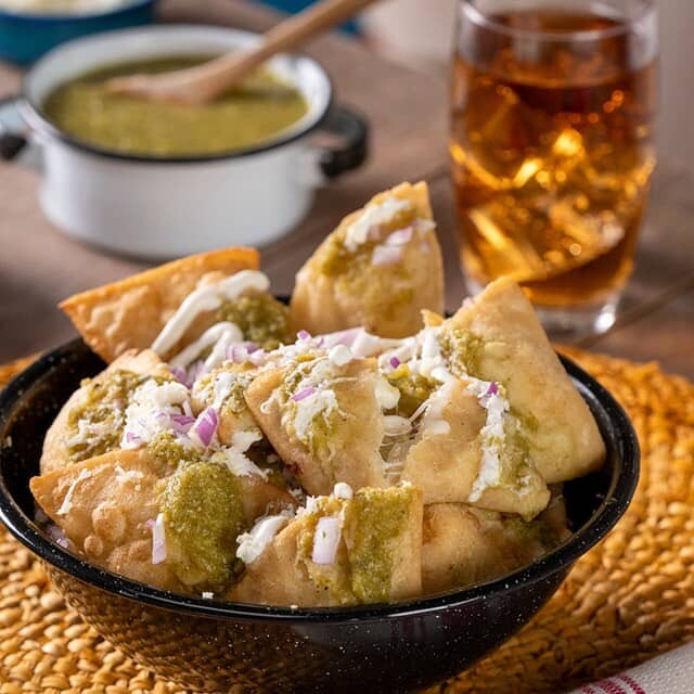 Totopos dorados, bañados en la salsa que favorita, con rico pastor casero y acompañados de frijoles. Elige tus toppings favoritos y disfrútalos