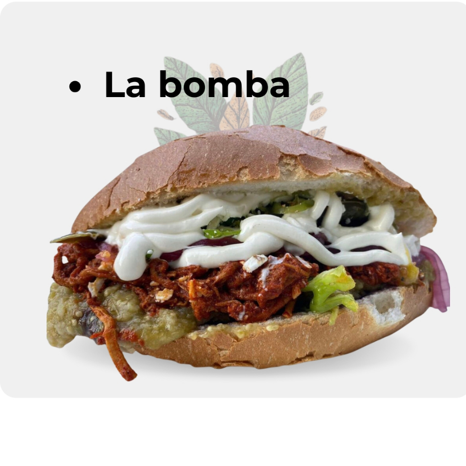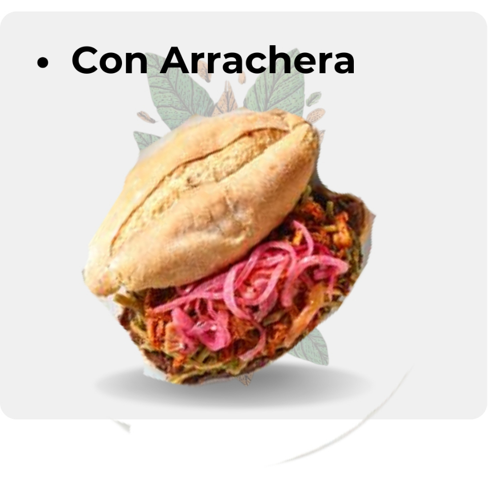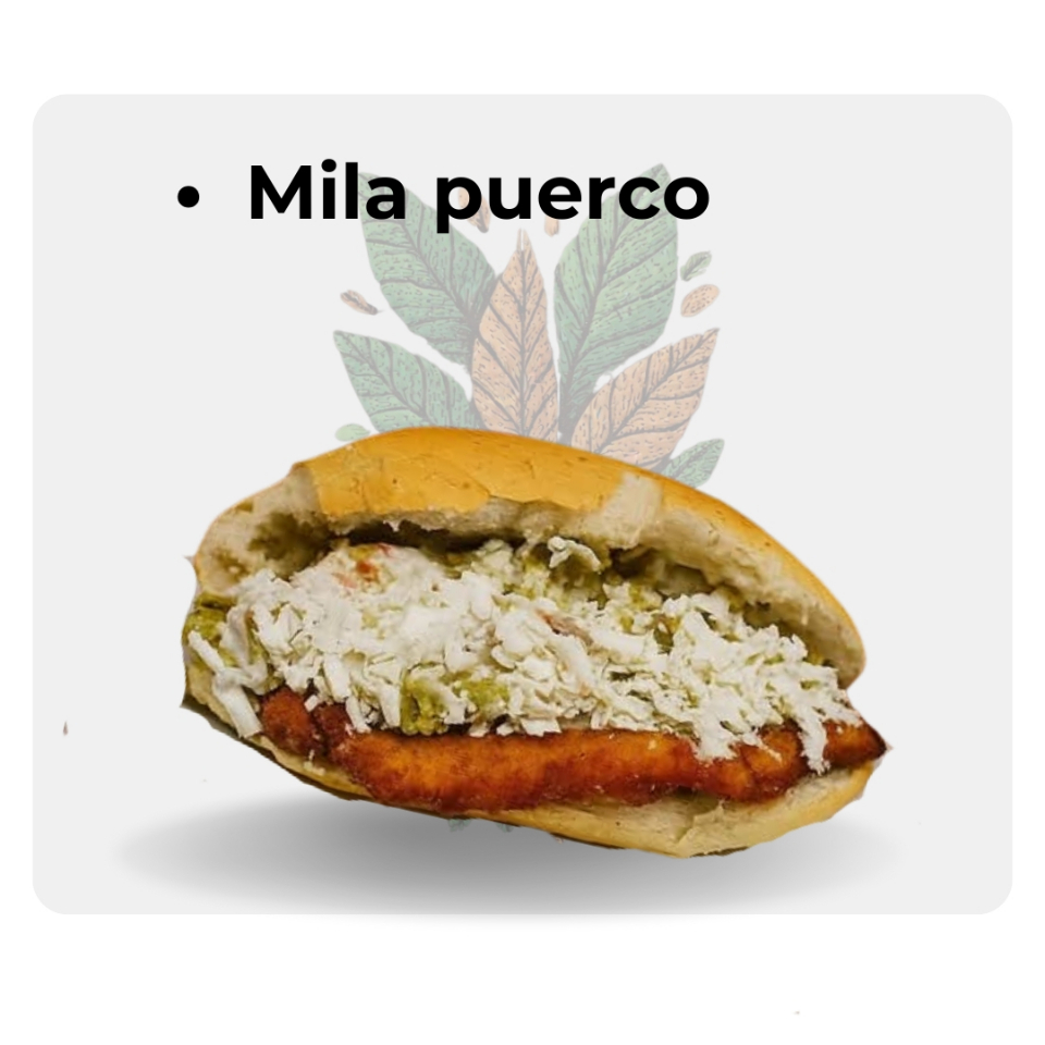 Cochinita pibil y Milanesa, chilaquiles sobre una cama de frijolitos refritos, crema y queso. En Bolillo XL.