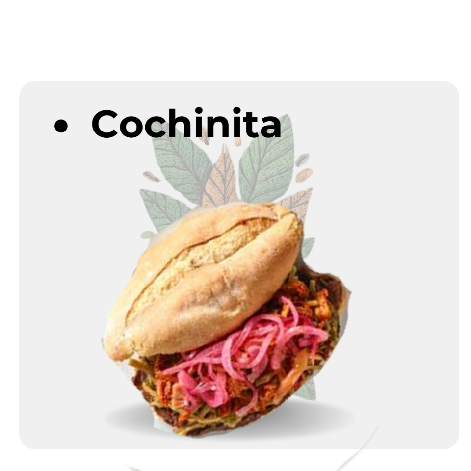 Cochinita pibil, chilaquiles sobre una cama de frijolitos refritos, crema y queso.