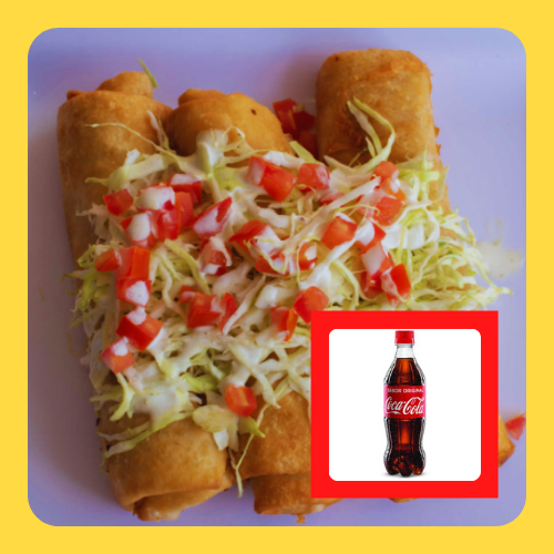 3 Chimichangas saladas 1 Coca Cola 600 ml.