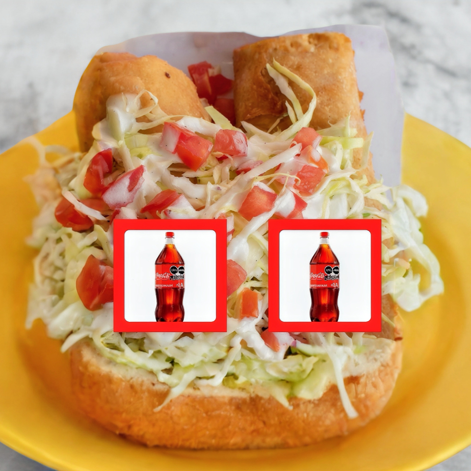 2 Chimichangas saladas 1 Coca Cola 600 ml.