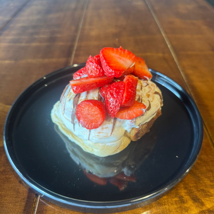 Rol Grande glaseado con topping de hasta 3 ingredientes incluyendo la fruta