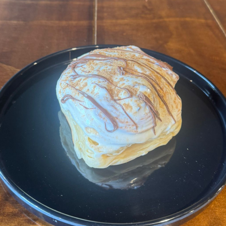 Rol Grande acompañado de glaseada receta de la casa más un topping de tu elección.