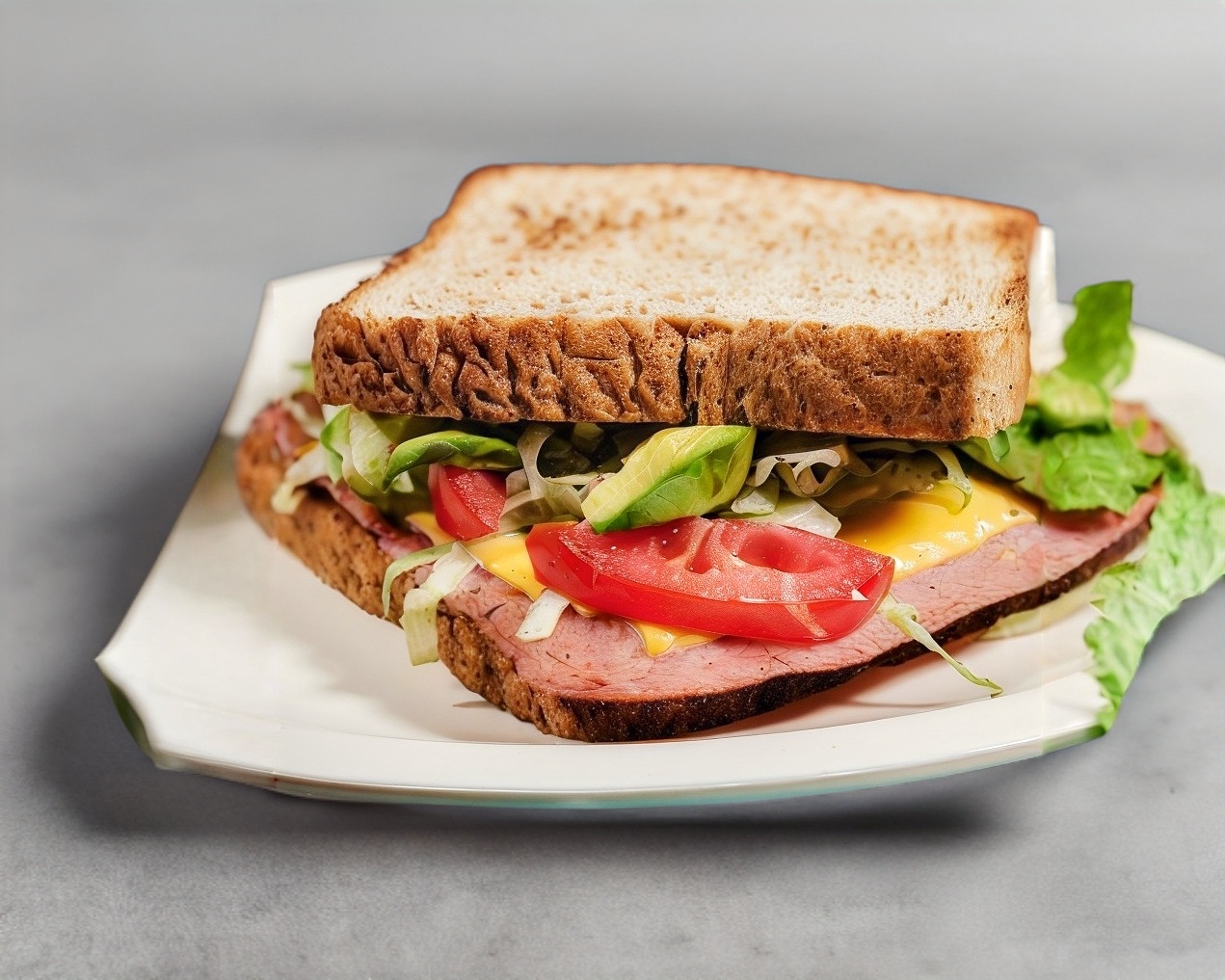 Delicioso sandwich integral de jamon con queso amarillo,lechuga,aguacate y jitomate