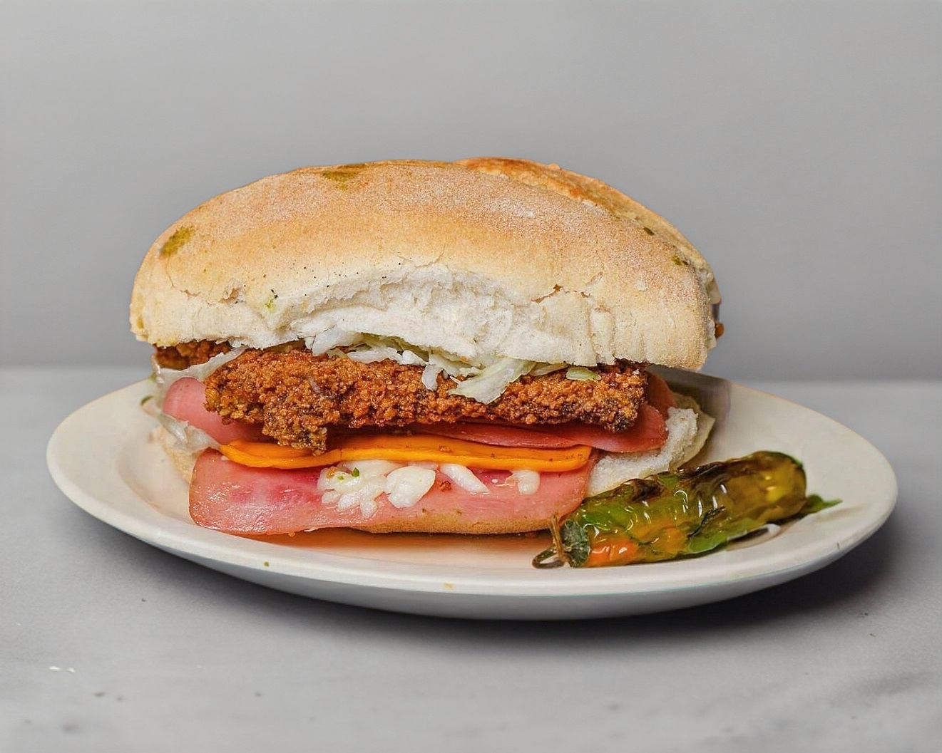 Delisiosa torta de milanesa de pollo empanizada queso blanco,lechuga jitomate y aguacate