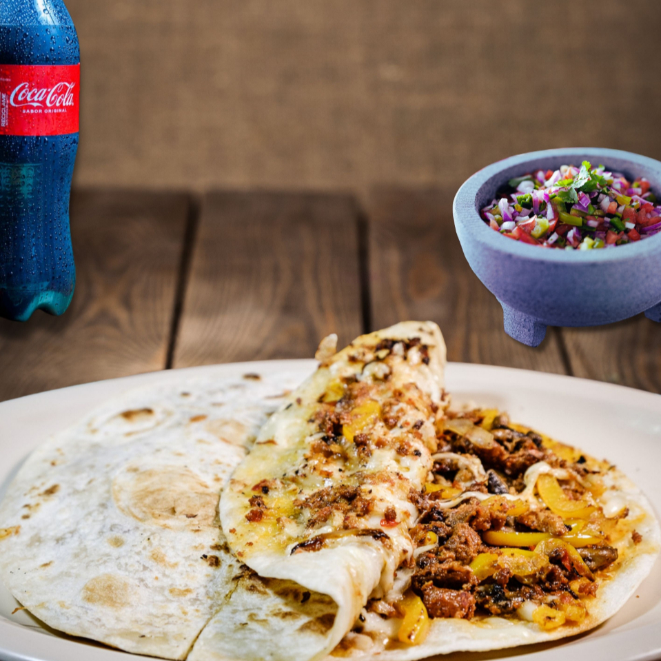 Deliciosa quesadilla gigante con tortilla de maiz bistec y queso.