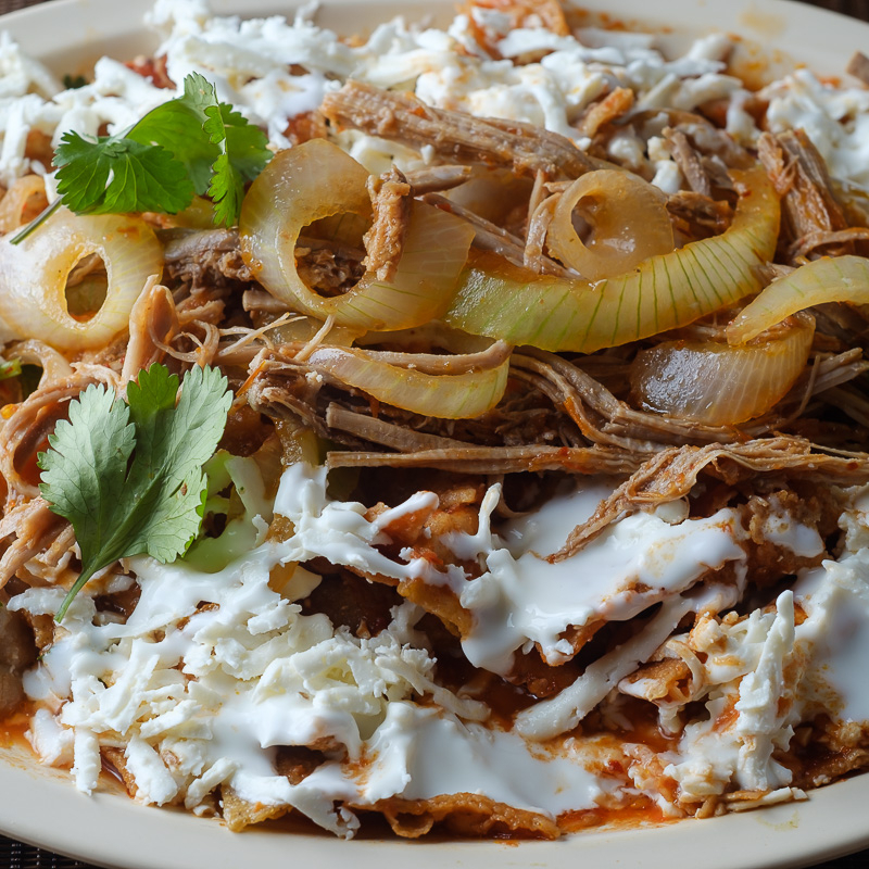 2 Ordenes de Chilaquiles Chicharrón Rojo