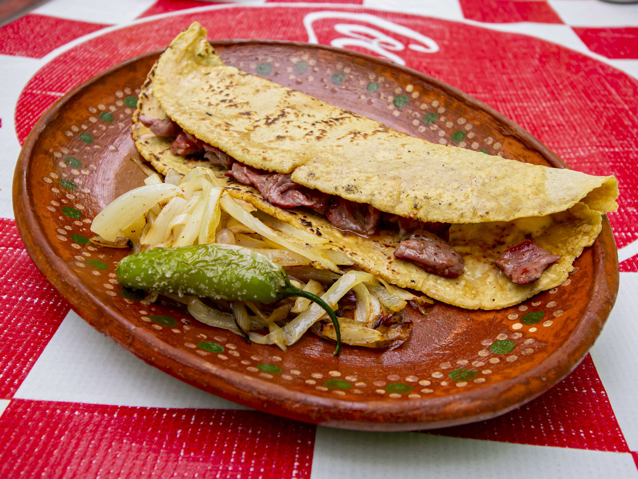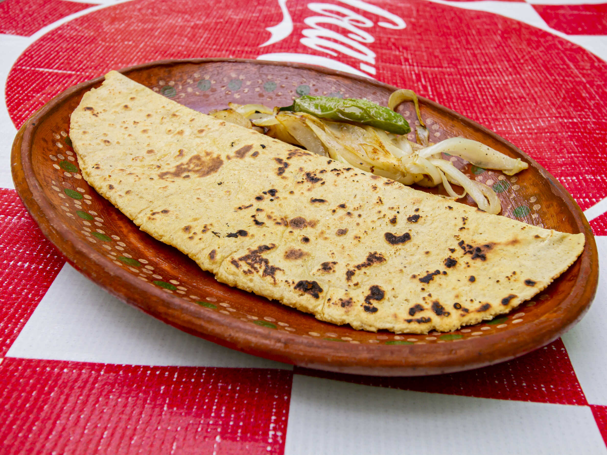 Huevo, chicharrón, picadillo, chorizo, bistek, rajas, nopales, mole. Puede ser de cualquiera de estos guisos