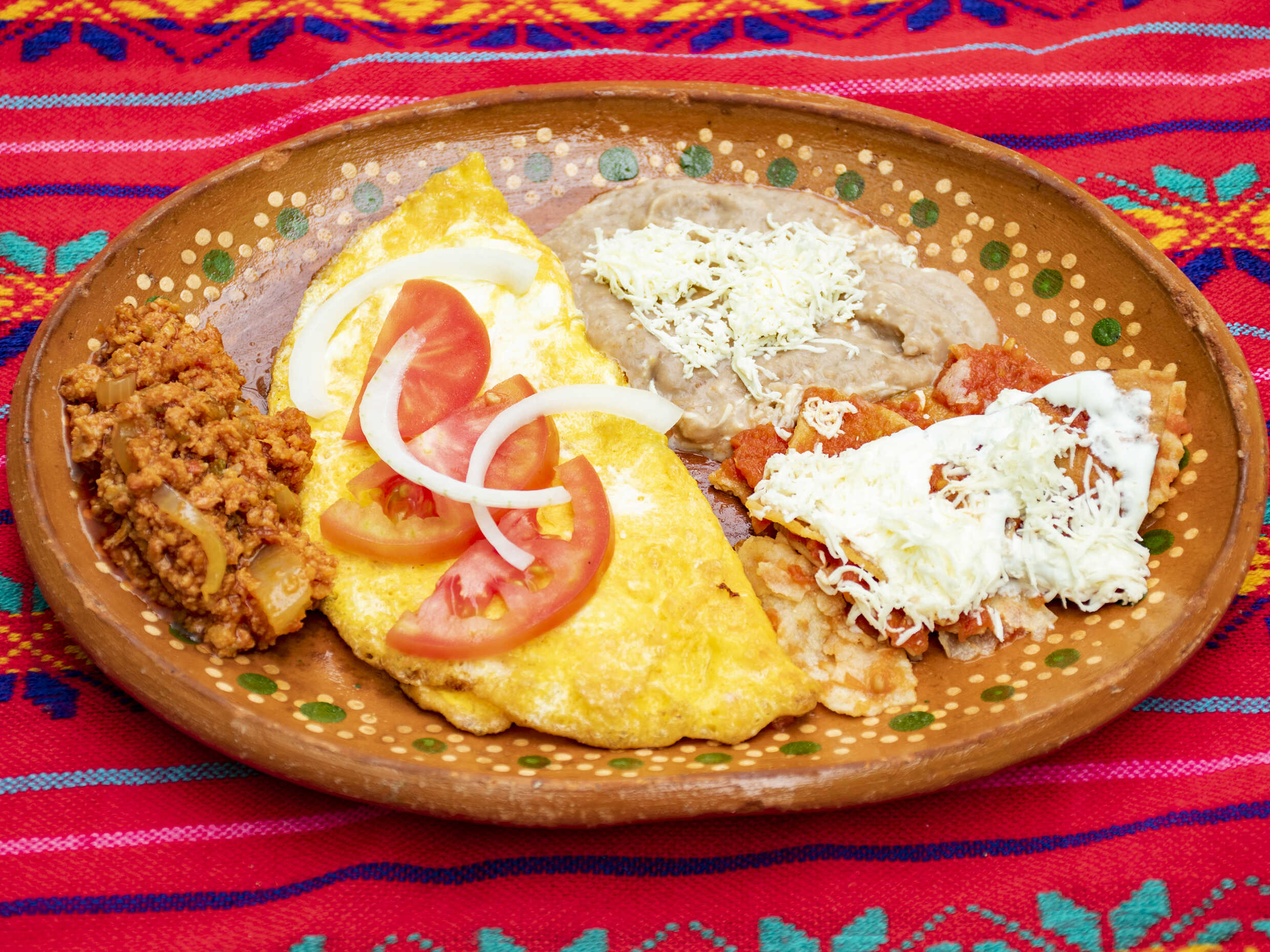 Queso Oaxaca, huevo, chicharrón, picadillo, chorizo, nopales,rajas,papás,bistek