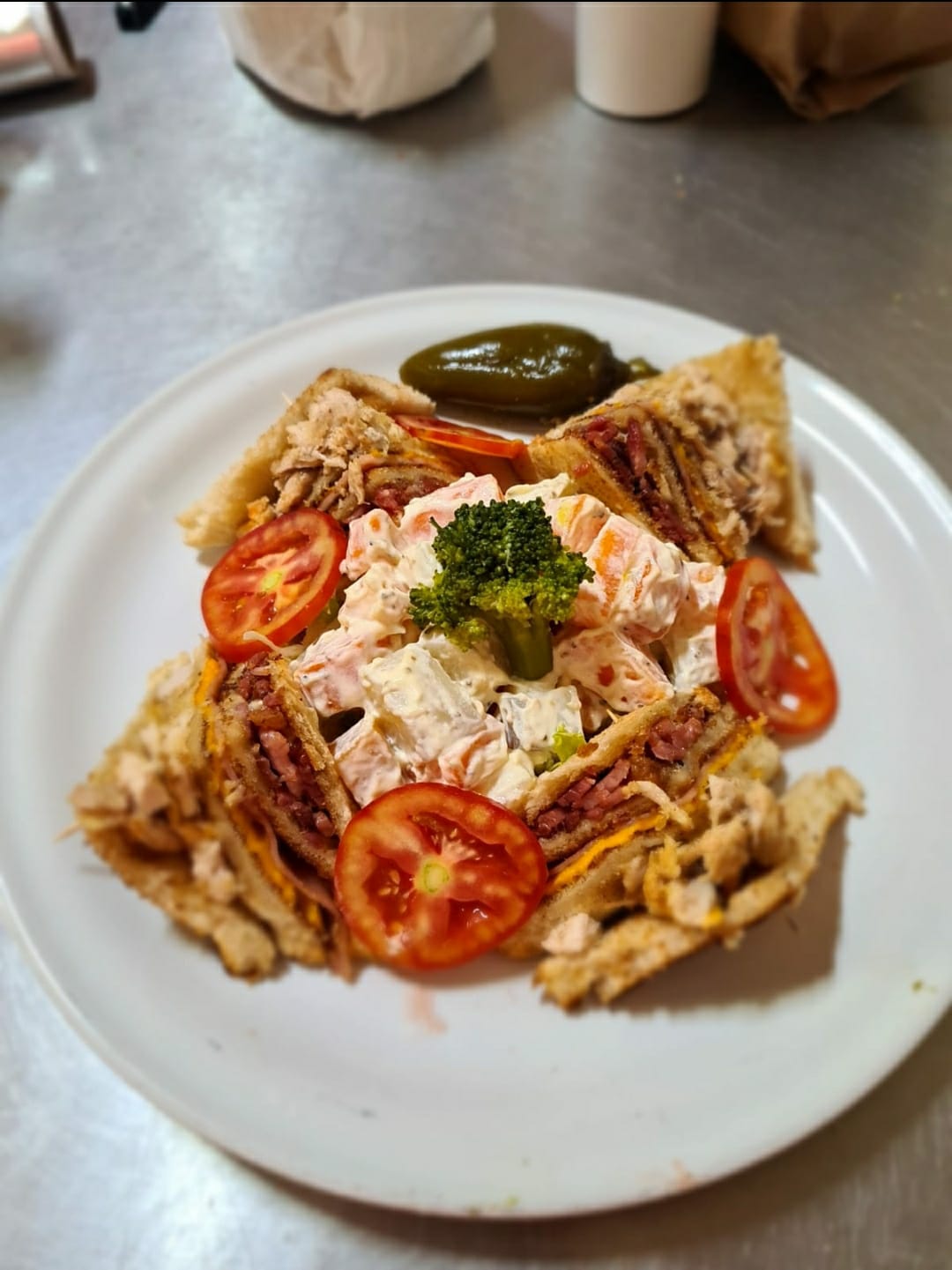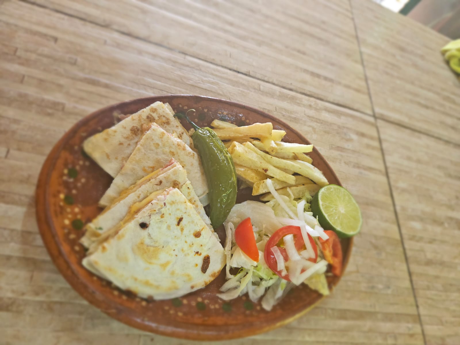 3 tortillas de harina jamón queso amarillo acompañado de ensalada y papas fritas