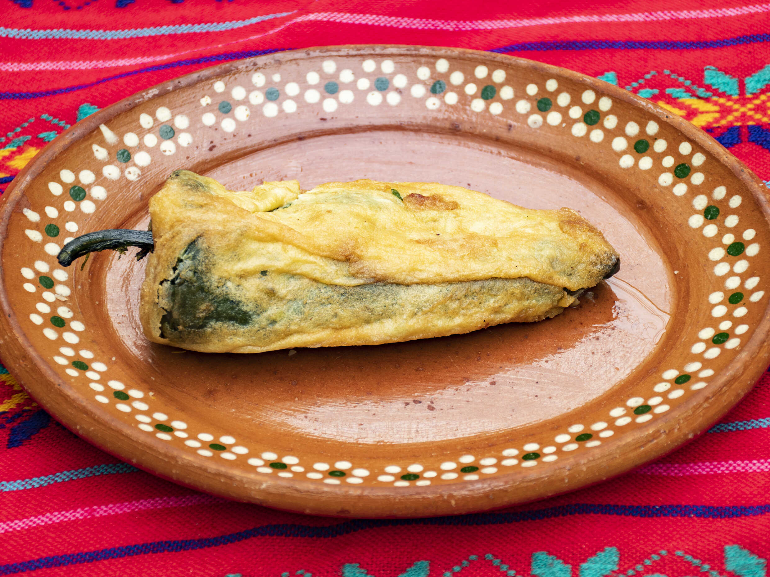 1 chile relleno, 1 torta de papa con 2 guarniciones