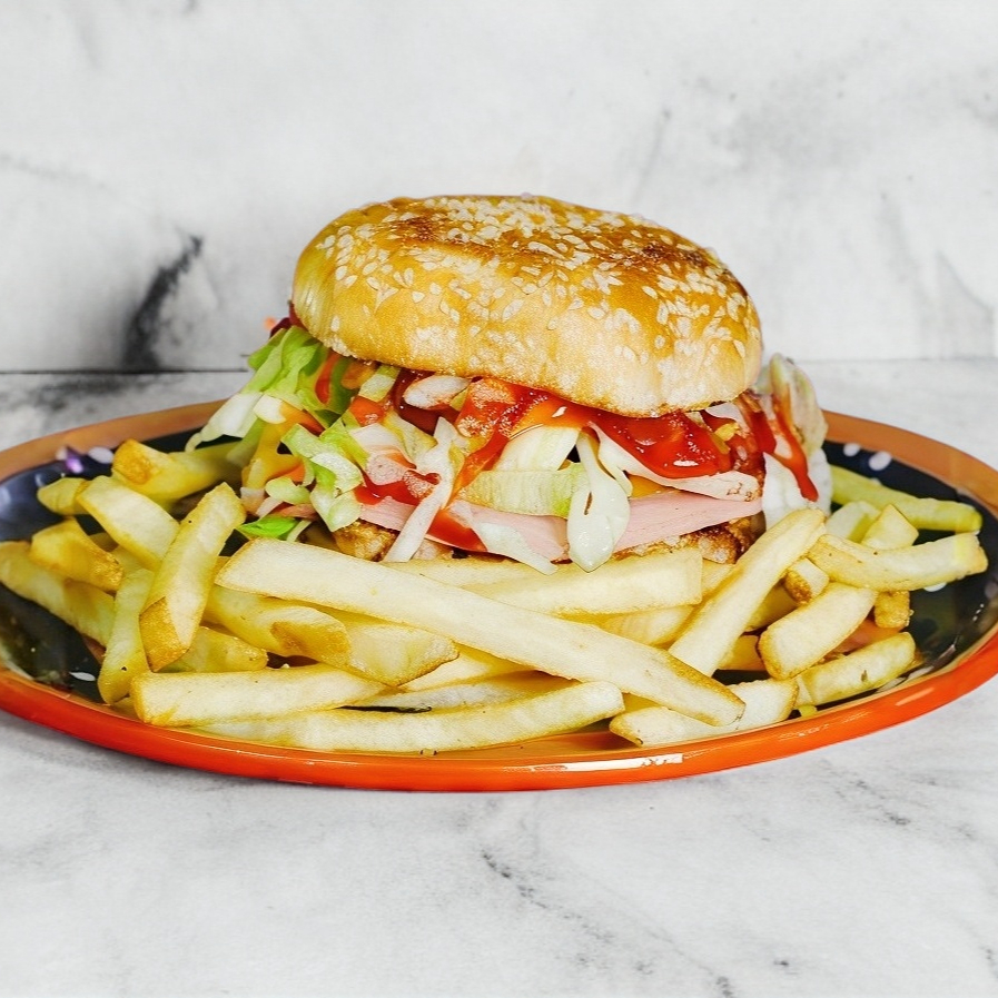 HAMBURGUESA CON PAPAS A LA FRANCESA