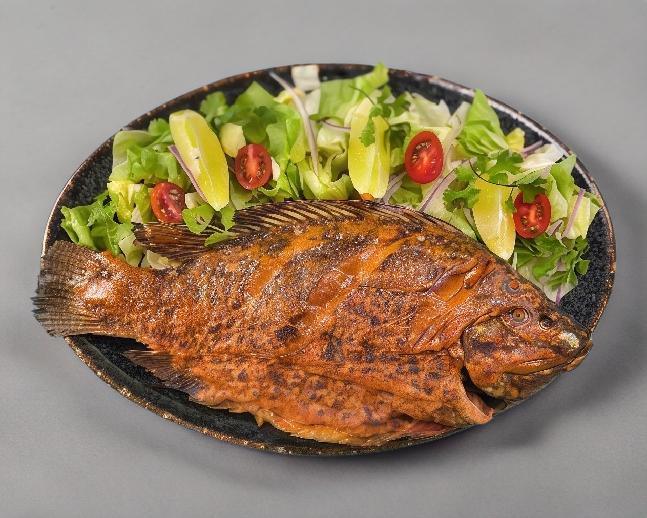Filete de pescado de mero empanizado grande acompañado de arroz o espagueti y una ensalada o frijoles, incluye tostadas, bolillo o tortillas y salsa.