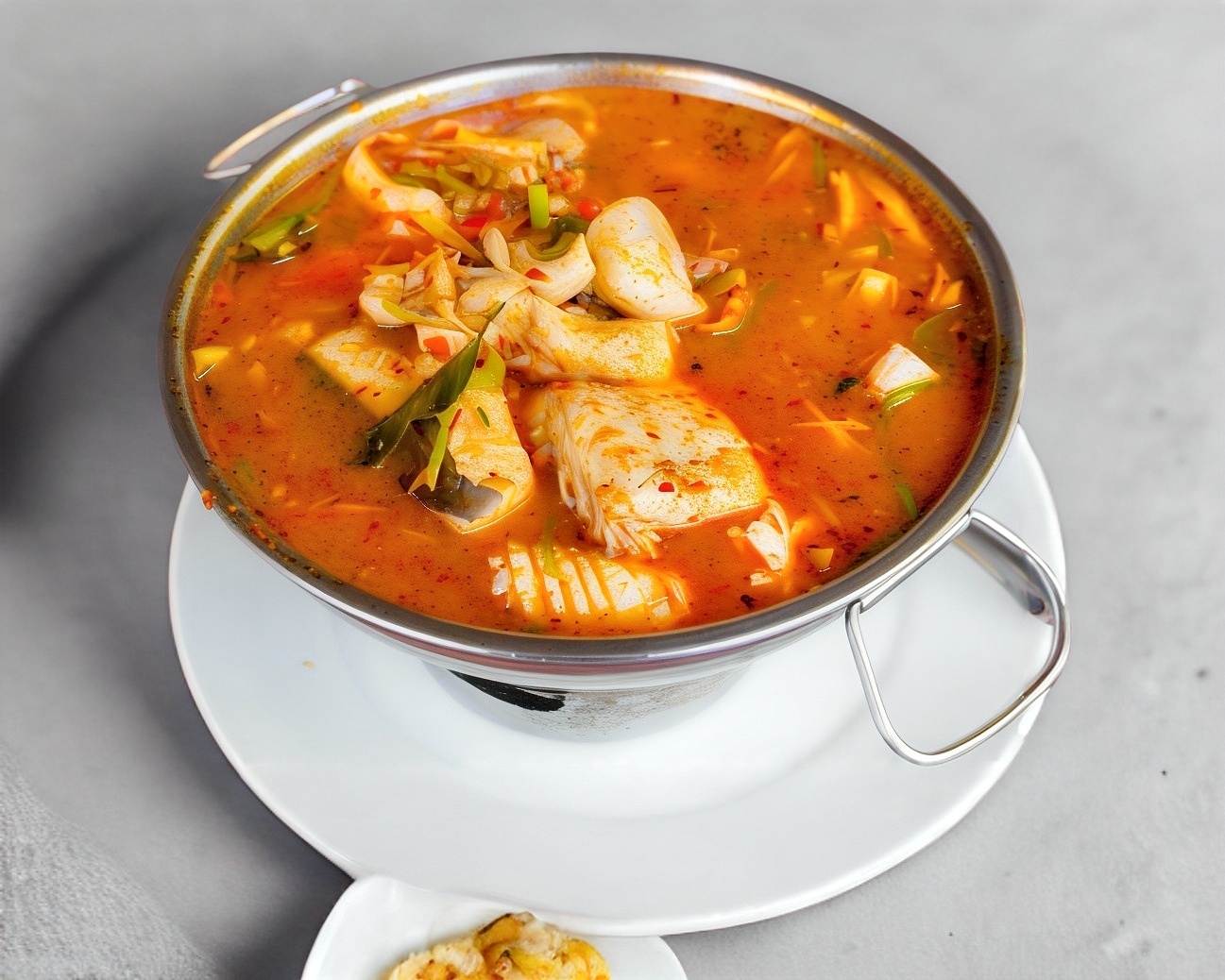 Un litro de caldo de pescado con dos piezas de pescado de bagre, tostadas, salsa especial, arroz blanco, cebolla y limones.