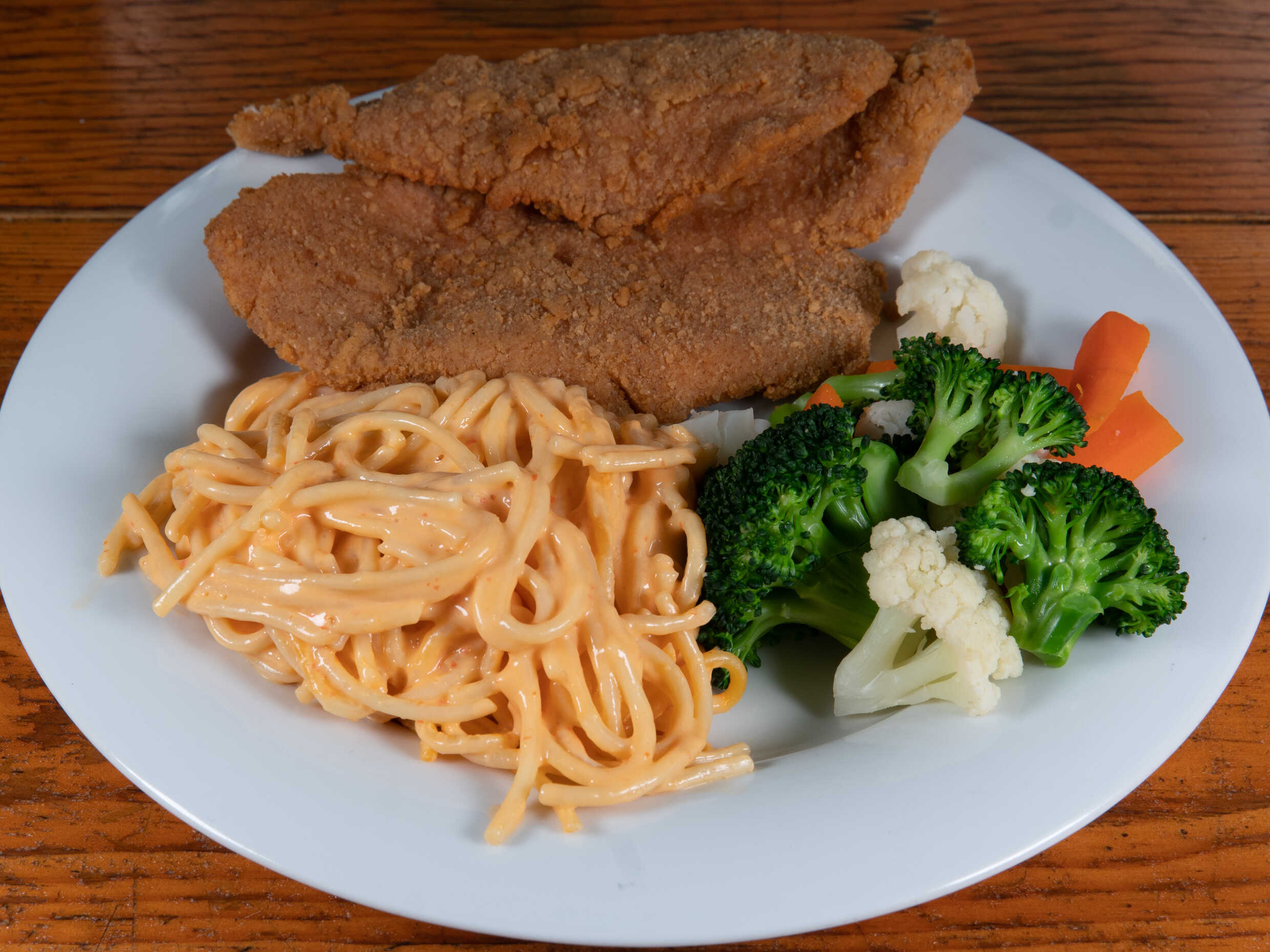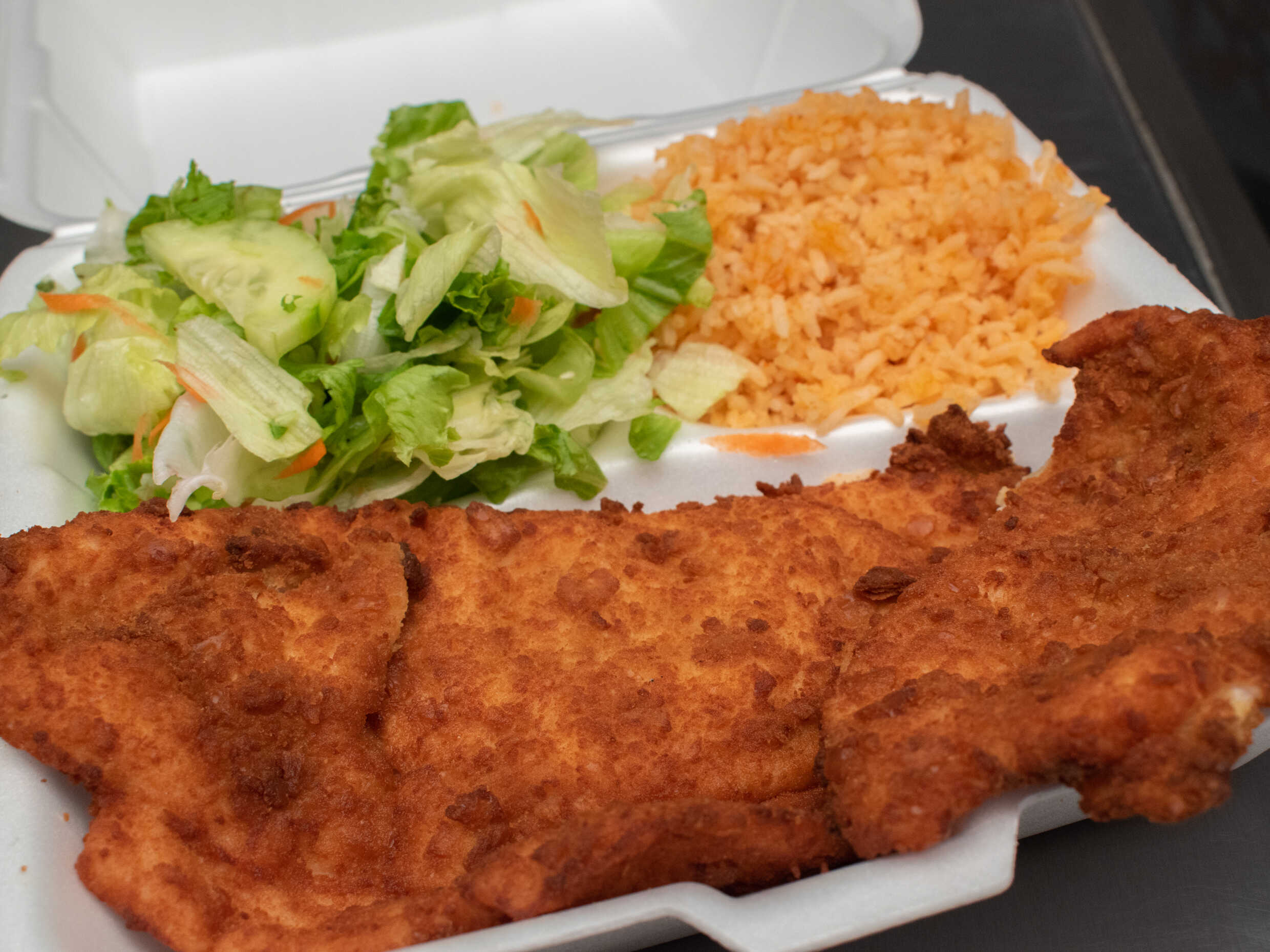Incluye salsa, espagueti o arroz, verduras al vapor o frijoles y postre arroz con leche o guayabas en almíbar.