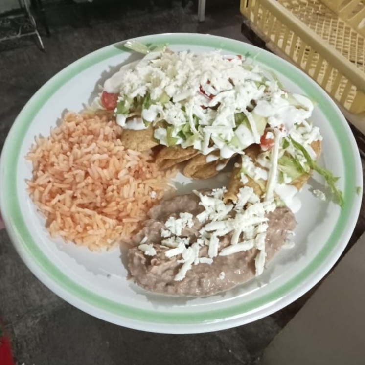 Crujientes totopos bañados en salsa de la casa, servidos con crema, queso y el sazón único de marylu.