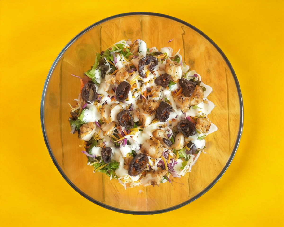 Combinación de lechuga, exquisitos boneless de pollo, zanahoría, col morada, aderezo ranch y un toque de chicharrón de jalapeño.
