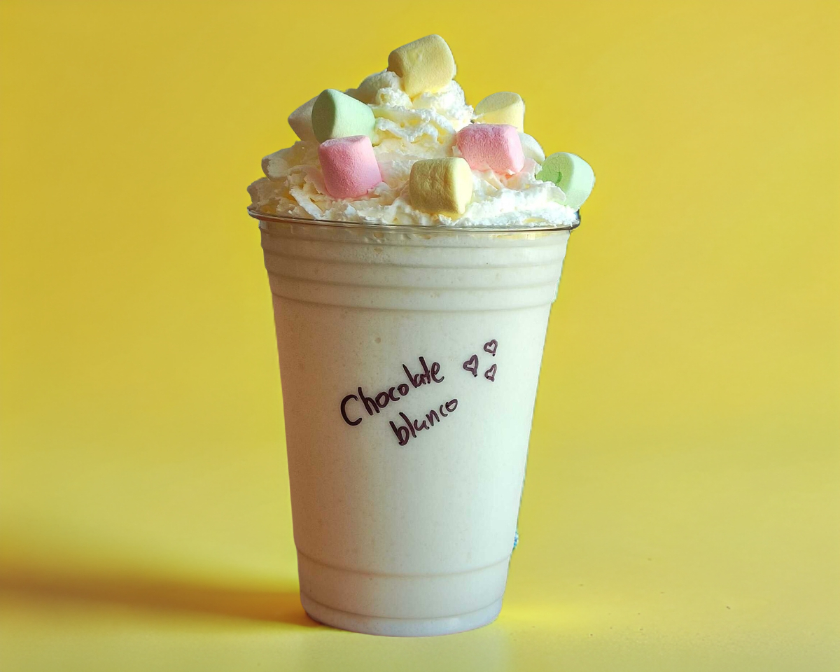 Delicioso frappé preparado con un dulce pero refrescante sabor a chocolate blanco.