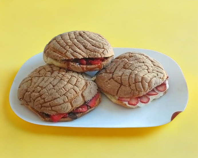 Deliciosas conchas rellenas con fresa natural y un topping a elegir
