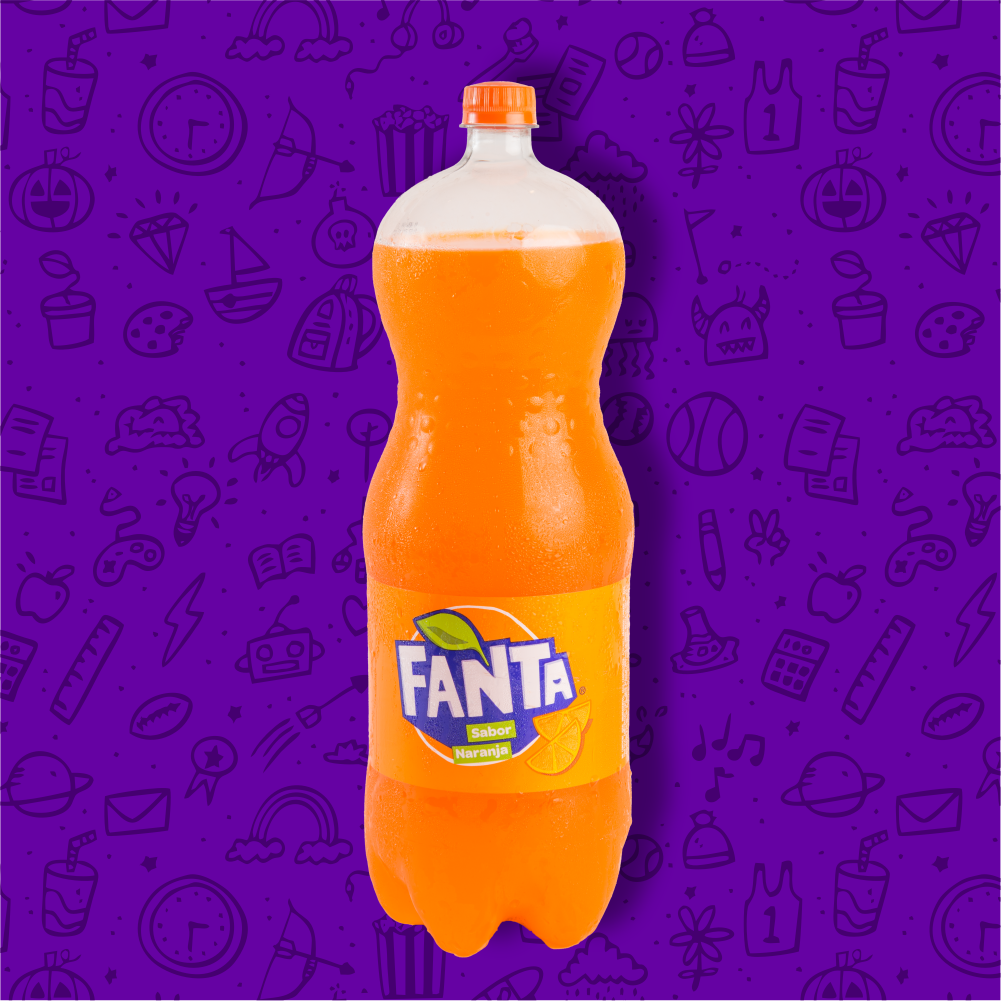 Refresco sabor naranja de Fanta en tamaño familiar, dulce y burbujeante.