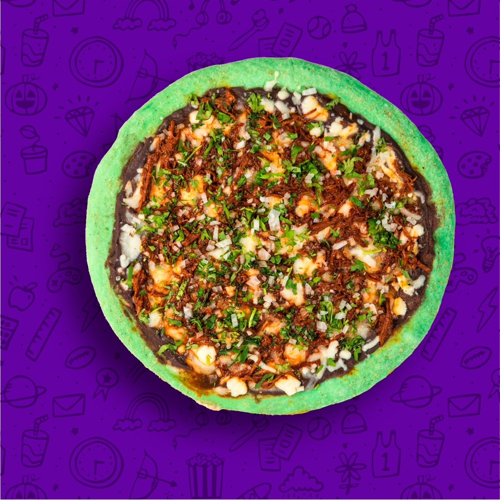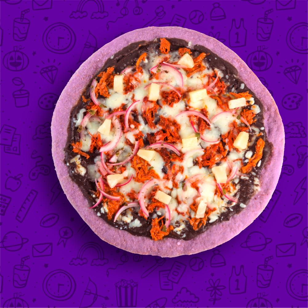 Prueba nuestro riquísimo huarache italiano en formato pizza, con base de frijol negro, nuestro delicioso mix de quesos y queso fresco espolvoreado, una opción clásica con un giro que no podrás creer.