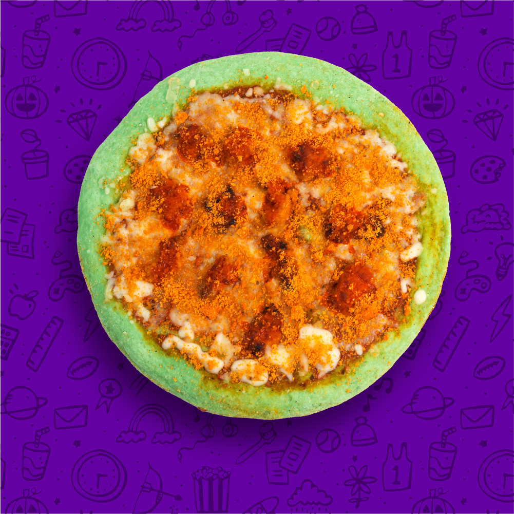 La pizza super saiyajin que es una explosión de sabor, base cubierta con boneless bañados en salsa búfalo, un delicioso mix de quesos y el toque crujiente de doritos, una combinación única que te hará volver por más.