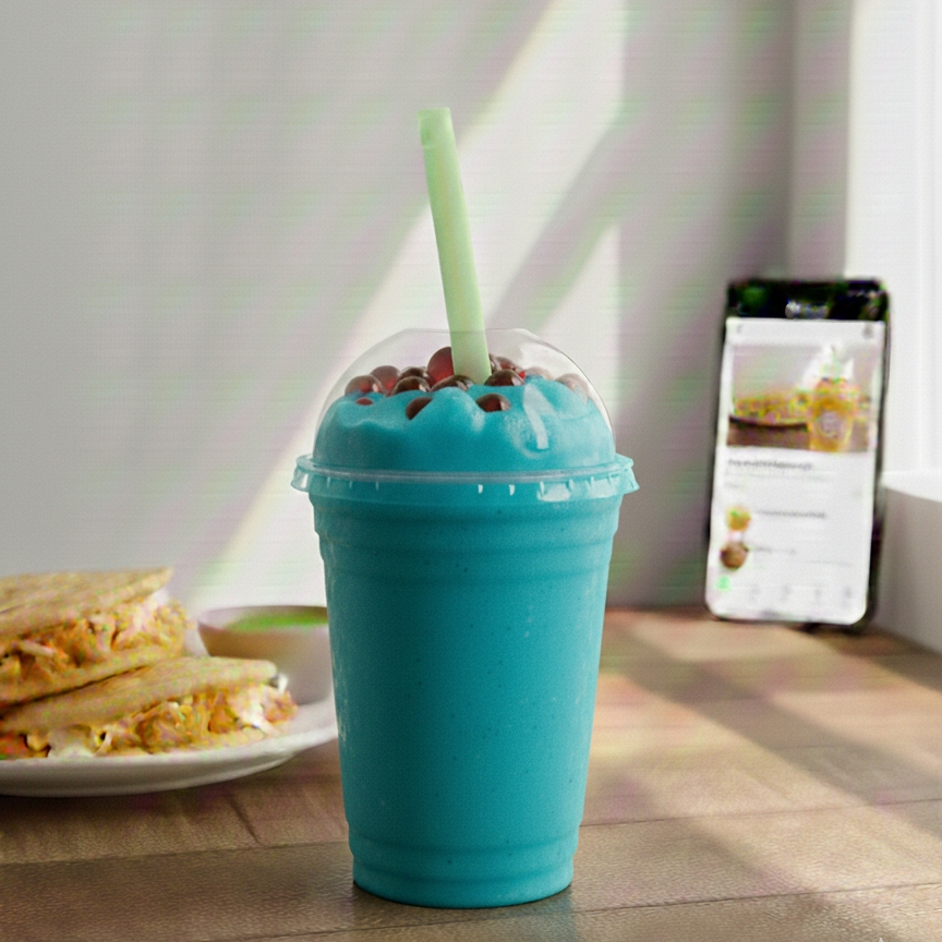 bebida a base de leche, preparada con hielo y delicioso saborizante de calidad sabor Mazapan, 16 oz