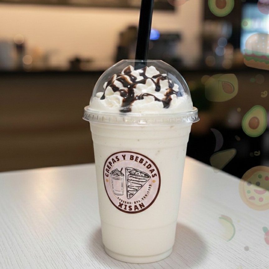 bebida a base de leche, preparada con hielo y delicioso saborizante de calidad sabor Chocolate blanco 16 oz
