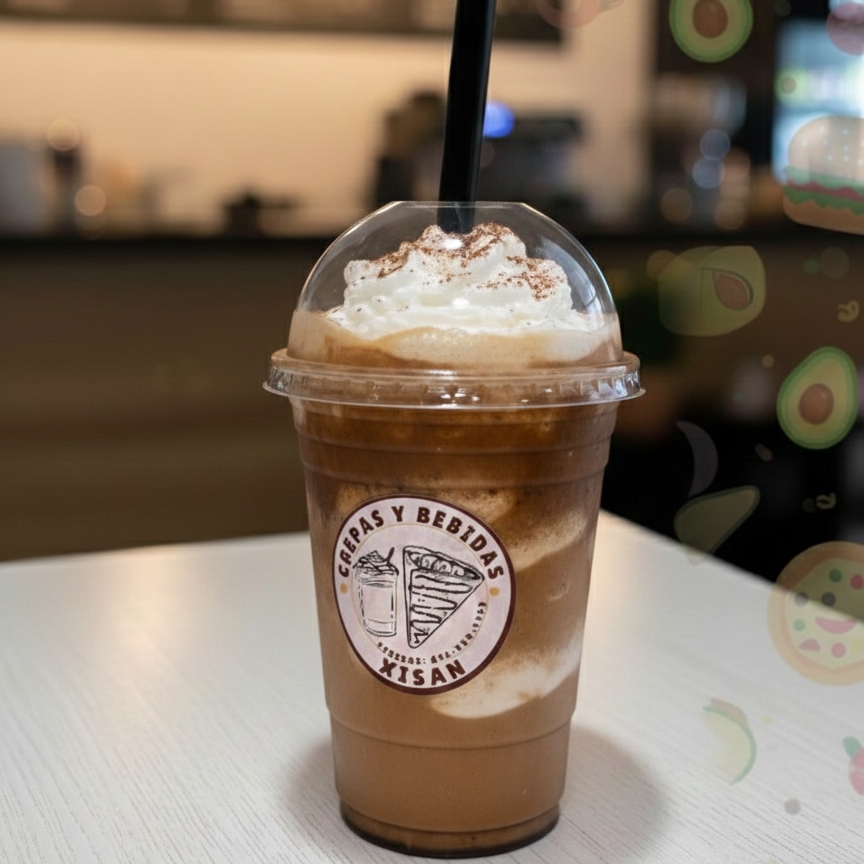 bebida a base de leche, preparada con hielo y delicioso saborizante de calidad sabor Moka, 16 oz