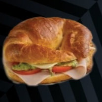 Croissants, jamón, aguacate, lechuga, queso blanco, mantequilla
