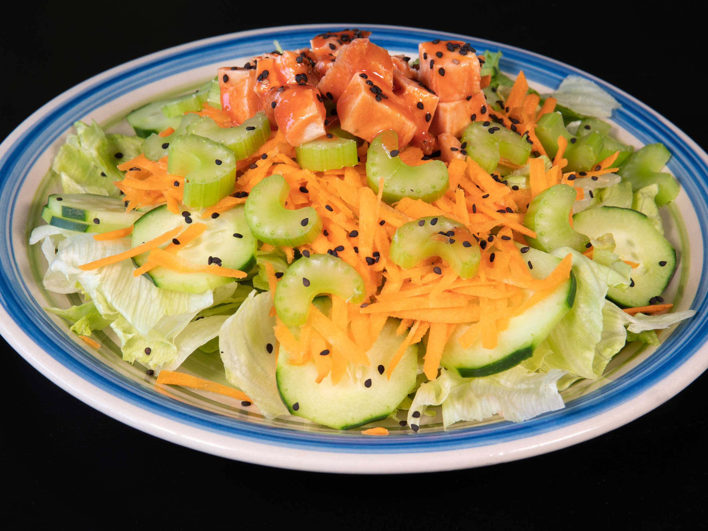 Lechuga, pepino, zanahoria, apio, ajonjolí, pollo en salsa buffalo, crutones y aderezo ranch.