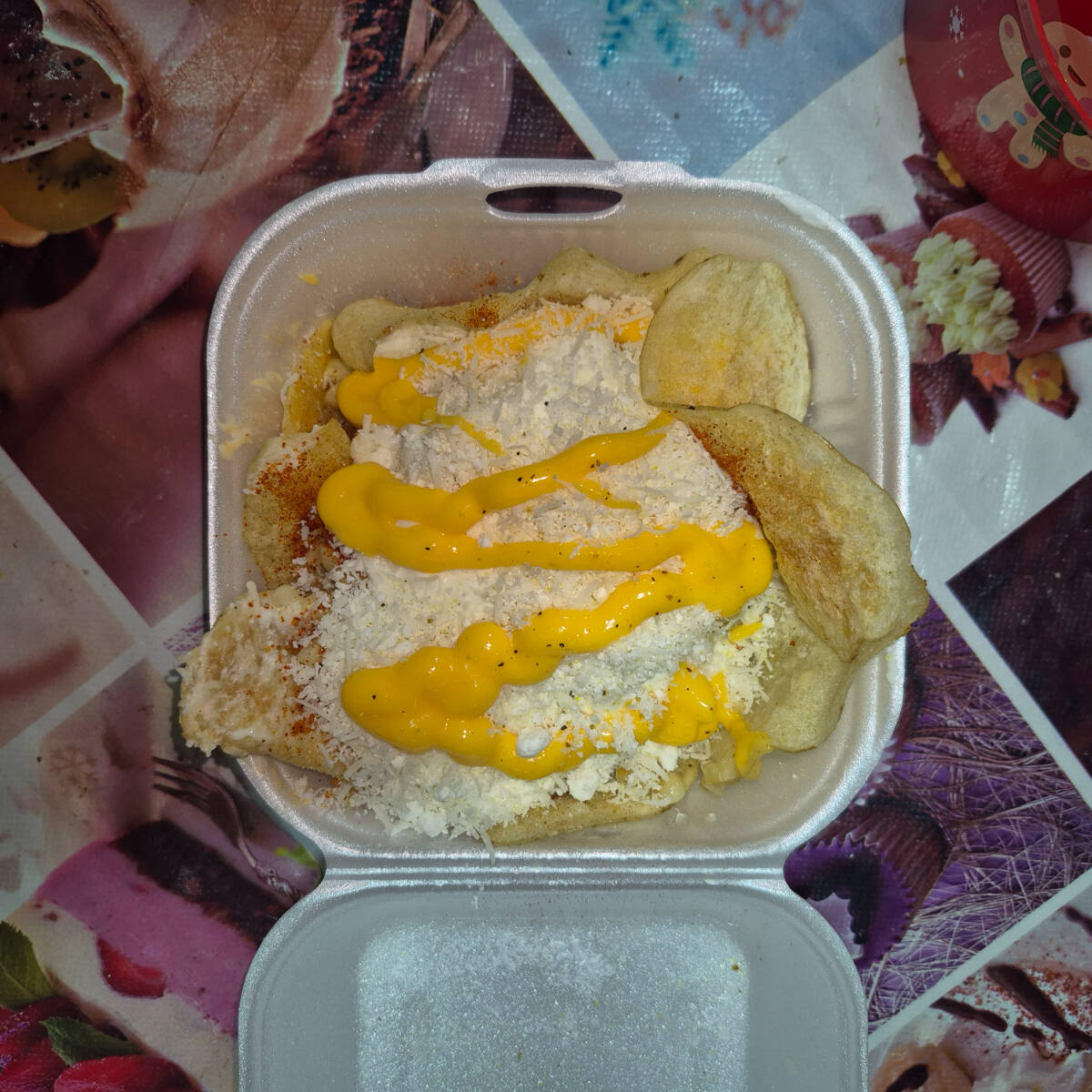 Clasicos Tostitos con elote e ingredientes de tu elección en una charols de unicel