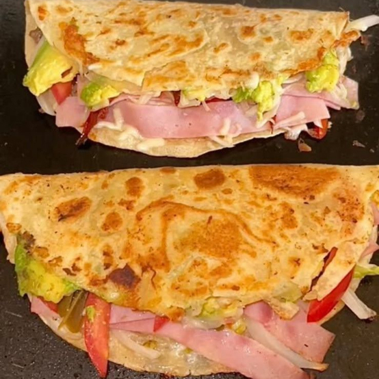 ingredientes: carne de puerco, jitomate, cebolla, queso blanco, aguacate, jamón y queso amarillo