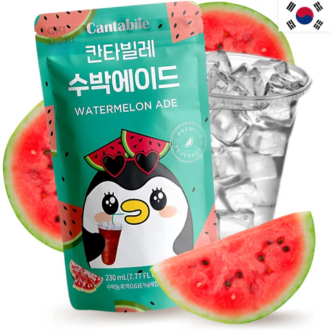 deliciosa bebida cantabile coreana exportada acompañada de un vaso de hielos y popote.