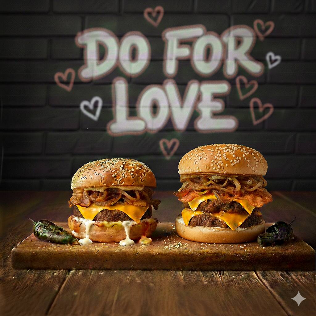 Dos jugosas carnes, doble queso americano, triple tocino, cebolla caramelizada, mayonesa y salsa BBQ... todo en una bomba de sabor que rima con flow. ¿El toque final? Un chile toreado que pica como un buen verso. 📍 Solo para los que saben lo que es comer con actitud.